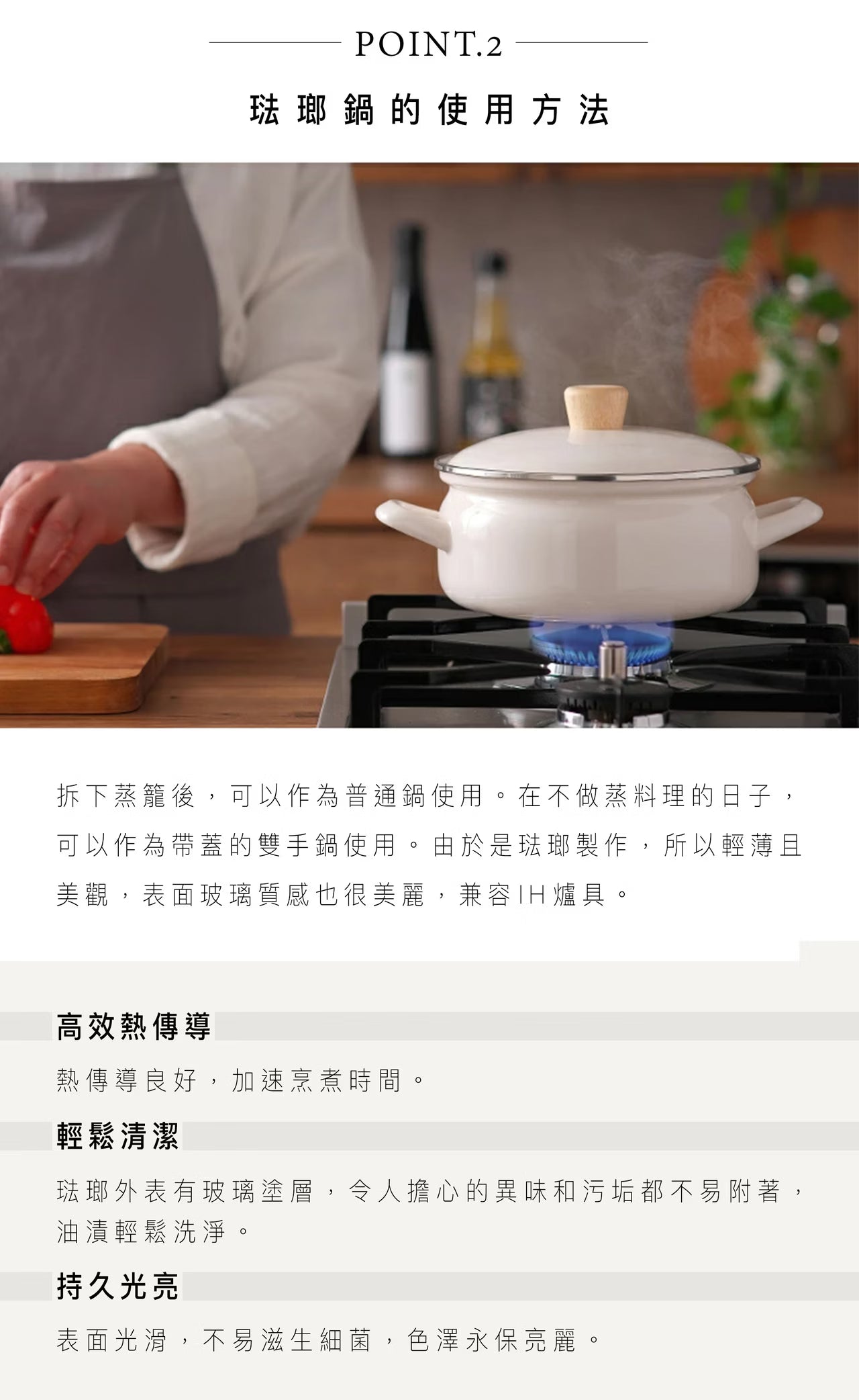 全港首發 日本大熱 【富士琺瑯 】20cm 二合一竹籠蒸鍋