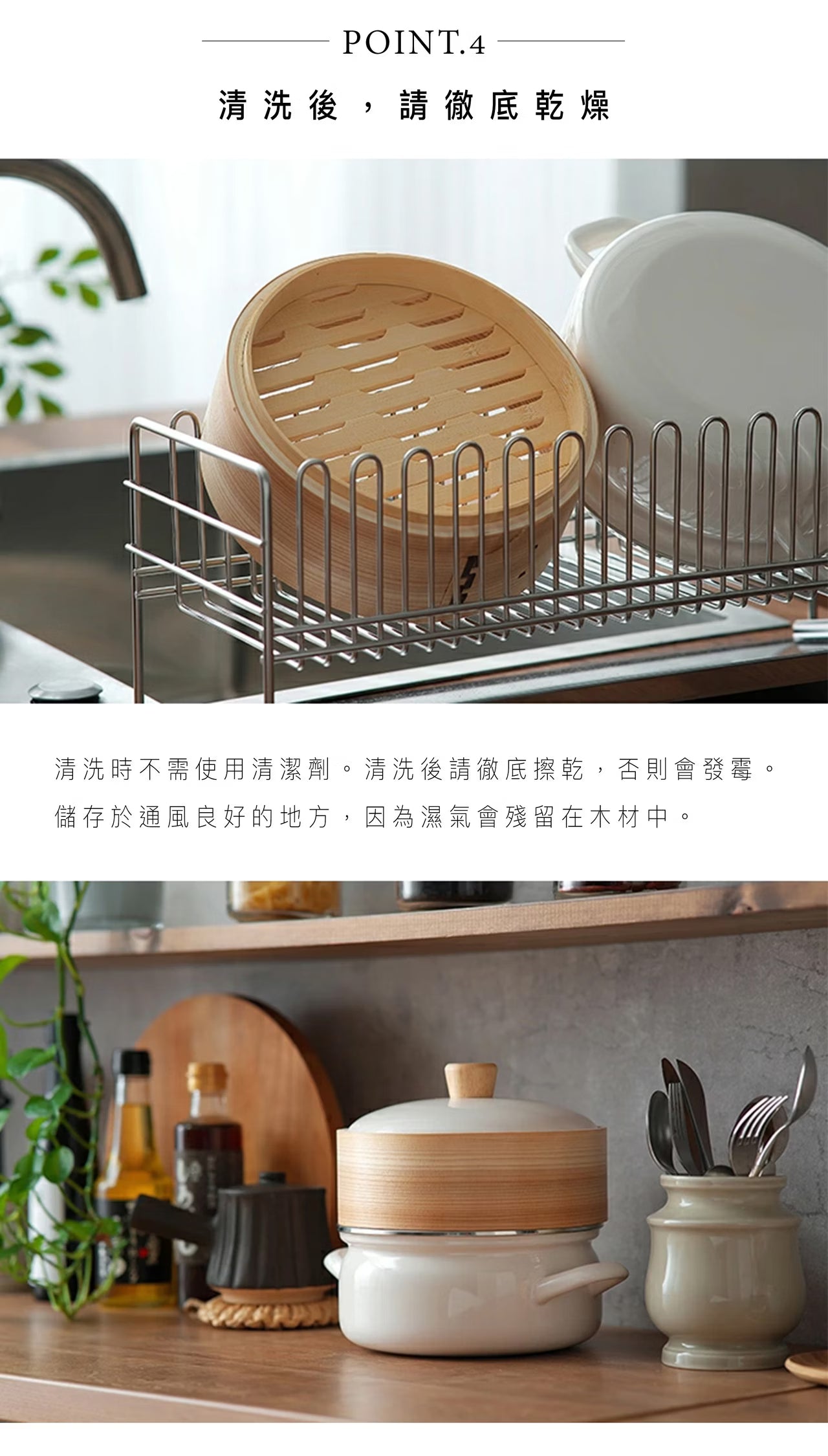 材質:琺瑯(鍋身)、天然竹(蒸籠)