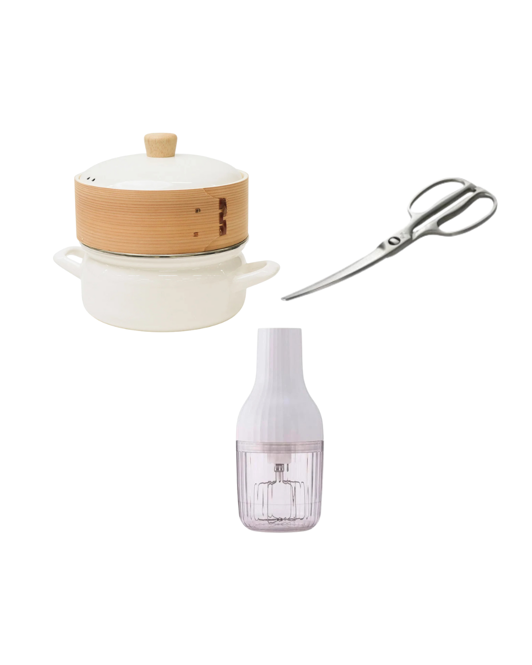 此套餐含「關孫六」無死角彎月型廚剪 x 1 + 自動鮮奶油打發器 x 1+ 【富士琺瑯 】20cm 二合一竹籠蒸鍋 x1